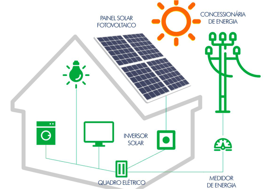A energia que sai das placas é transmitida ao inversor / microinversor, responsável pela conversão em corrente alternada, tornando possível a utilização na residência, comércio ou indústria.